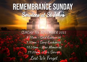 The main act of worship at St John’s is the Eucharist – on Sundays, there is a shorter said communion service at 8am, followed by the sung Parish Eucharist at 10.00am. The main midweek Eucharist is on Wednesday mornings at 10.30am. All of our services are followed by refreshments.